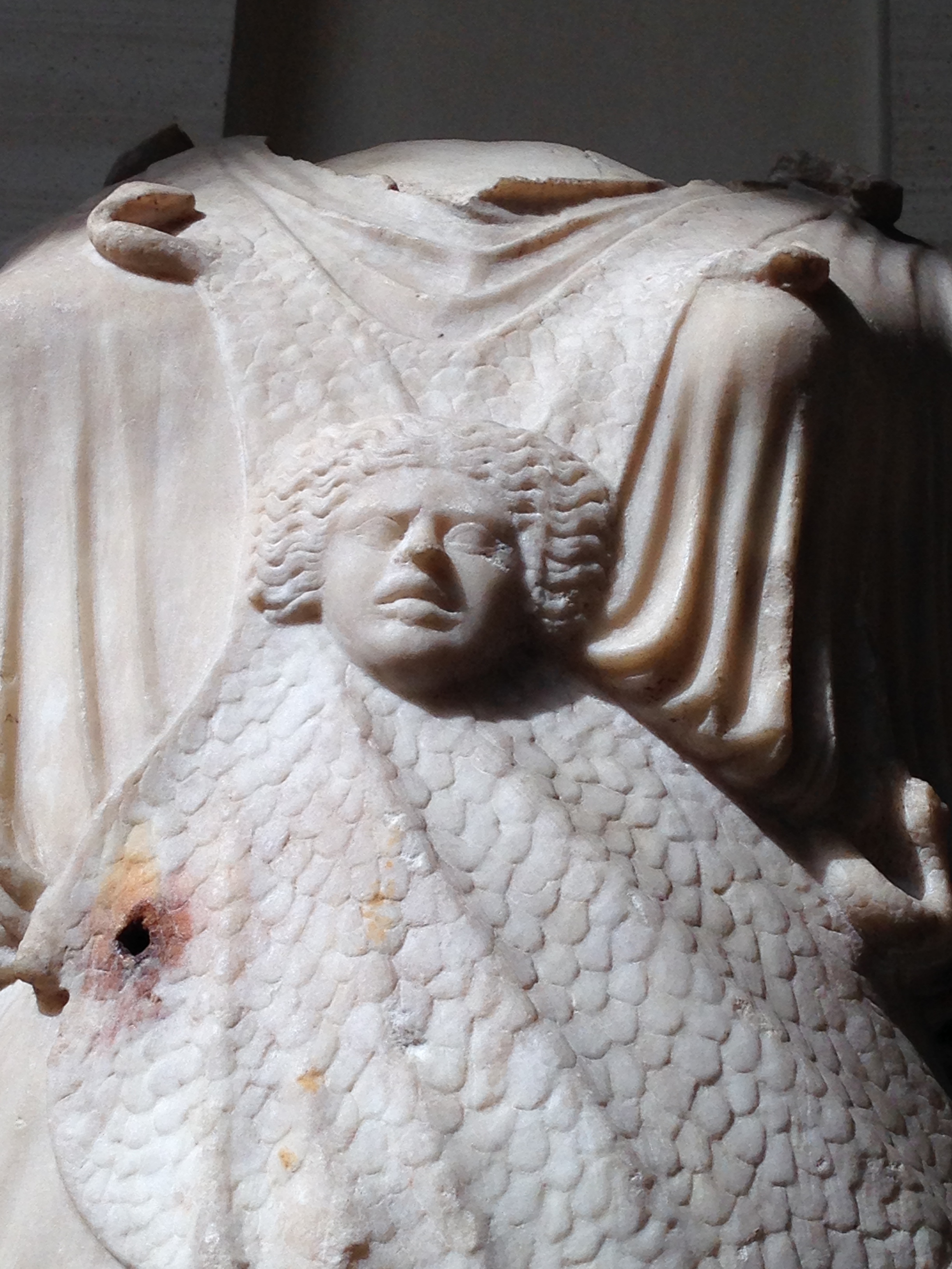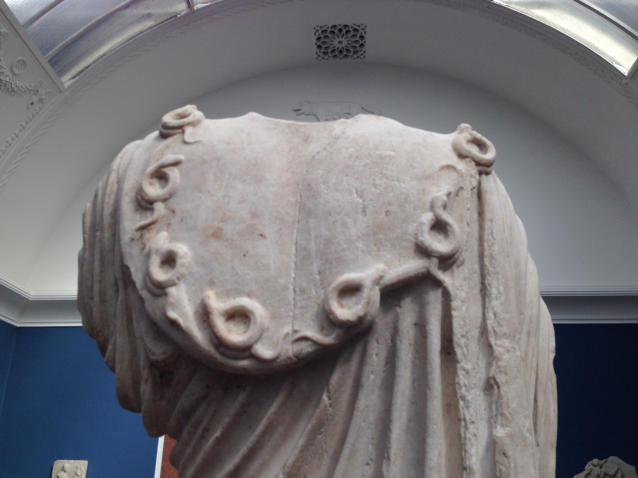 L’égide, peau de chèvre frangée de serpents, protégeait Athéna/Minerve tout en symbolisant la puissance protectrice de la déesse.