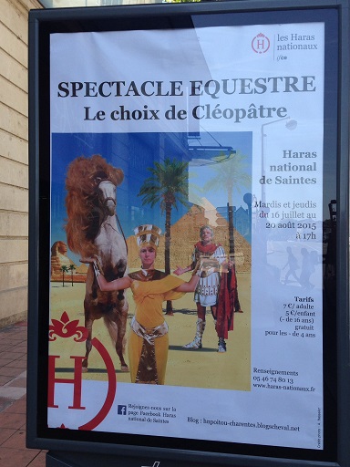 En effet, preuve, s’il en est besoin, que l’Antiquité est toujours populaire, le Haras National de Saintes proposait une animation équestre sous la bannière de Rome (S.P.Q.R.), intitulée “Le choix de Cléopâtre.”