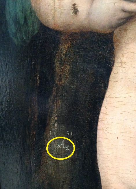 Particularité amusante, sur ces deux tableaux, la “signature” de l’artiste est un serpent ailé et microscopique !