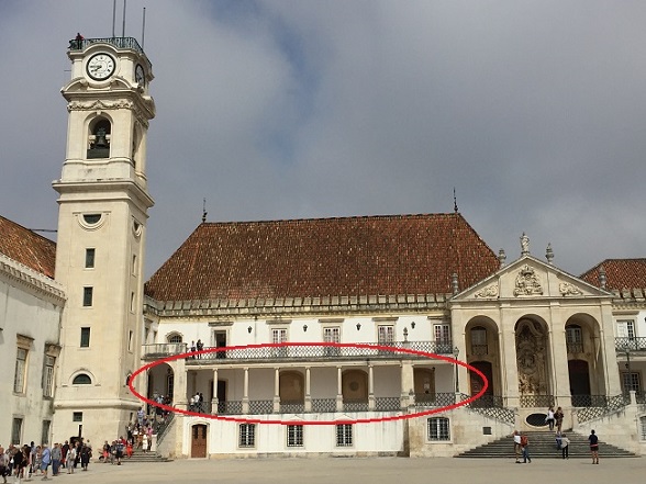 Comme dans toutes les université médiévales européennes, la langue d’étude et de communication à Coimbra était exclusivement le latin. C’est pourquoi la galerie extérieure à colonnes à côté de la tour de l’horloge s’appelle Via Latina.