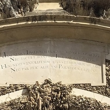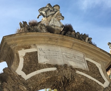 Par exemple, dans le parc Santa Cruz, en haut du monumental portail deux médaillons célèbrent en vers latins la beauté de la nature liée à la mythologie, tandis que des panneaux d’azulejos (carreaux de faïence bleus, à l’origine) qui tapissent les bancs de pierre affichent des phrases latines extraites de la Bible.
