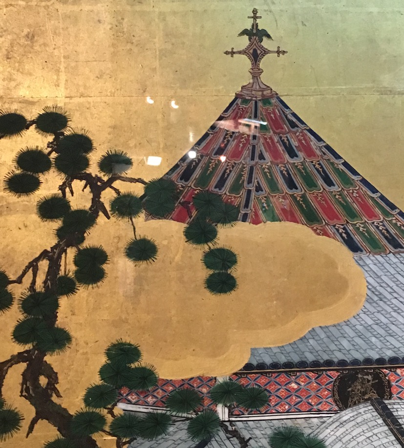 Ces précieux panneaux de soie peinte et dorée à la feuille d’or, datant de 1606 environ, sont attribués à l’école Kano et appelés namban — du nom de nambarajin (les “Barbares du Sud”) dont les Japonais désignaient les Portugais.