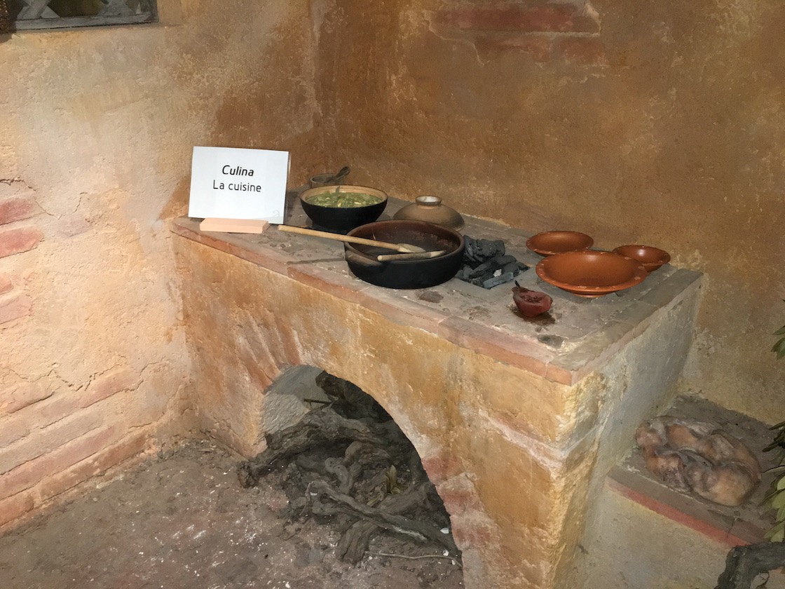 Une cuisine (culina), une salle à manger (triclinium) et des chambres à coucher (cubicula, au pluriel) complètent la reconstitution.