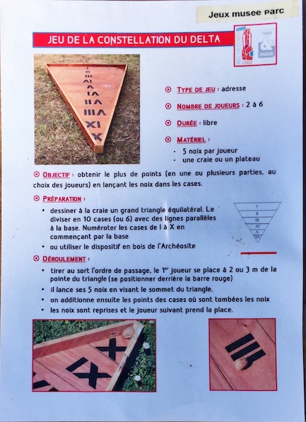 Ce voyage dans le temps se continue dans un grand espace en plein air où petits et grands peuvent s’initier aux jeux des Romains. Moi-même j’ai joué à la “fossette”