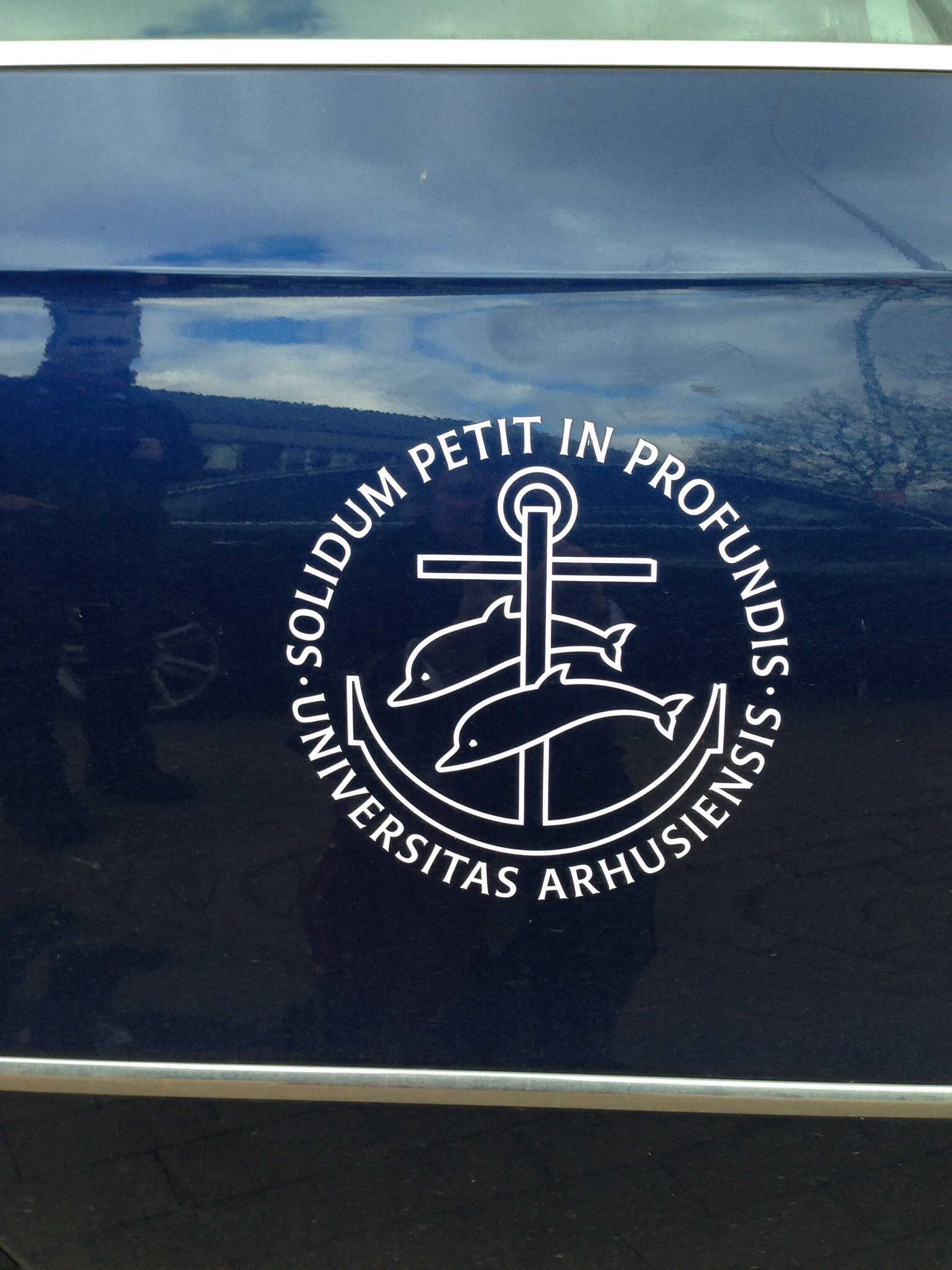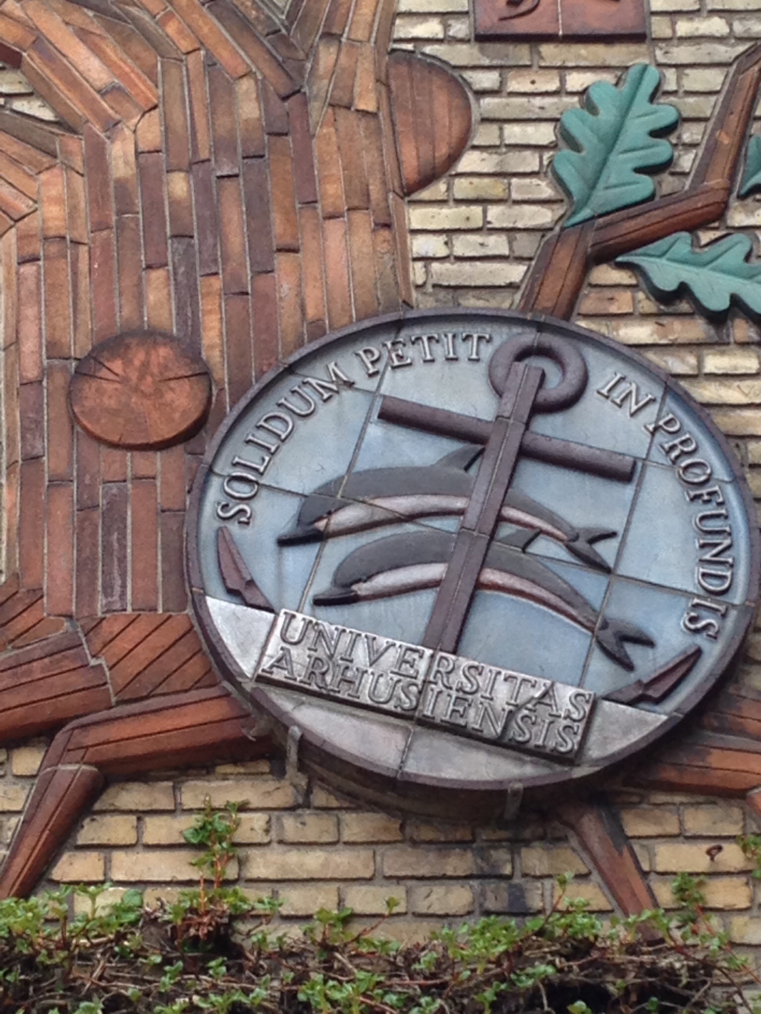 Quant au sens de la phrase, il peut être élucidé par cet autre commentaire : L’ancre symbolise aussi le conflit du solide et du liquide, de la terre et de l’eau. Il faut que le conflit soit résolu, pour que la terre et l’eau conjuguées favorisent une évolution féconde (ibid.). Sachant que le dauphin symbolise aussi la sagesse, ici c’est un encouragement à approfondir l’étude qui est exprimé — ce qui est normal pour une université !