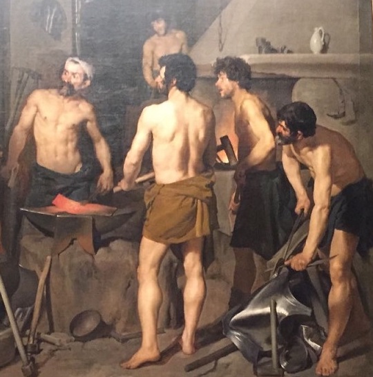 Homère le décrit forgeant notamment le bouclier d’Achille. D’ailleurs, le peintre espagnol Diego Velasquez représente une vision idéalisée de La Forge de Vulcain (Musée du Prado, Madrid) pour montrer comment les dieux appréciaient son travail :