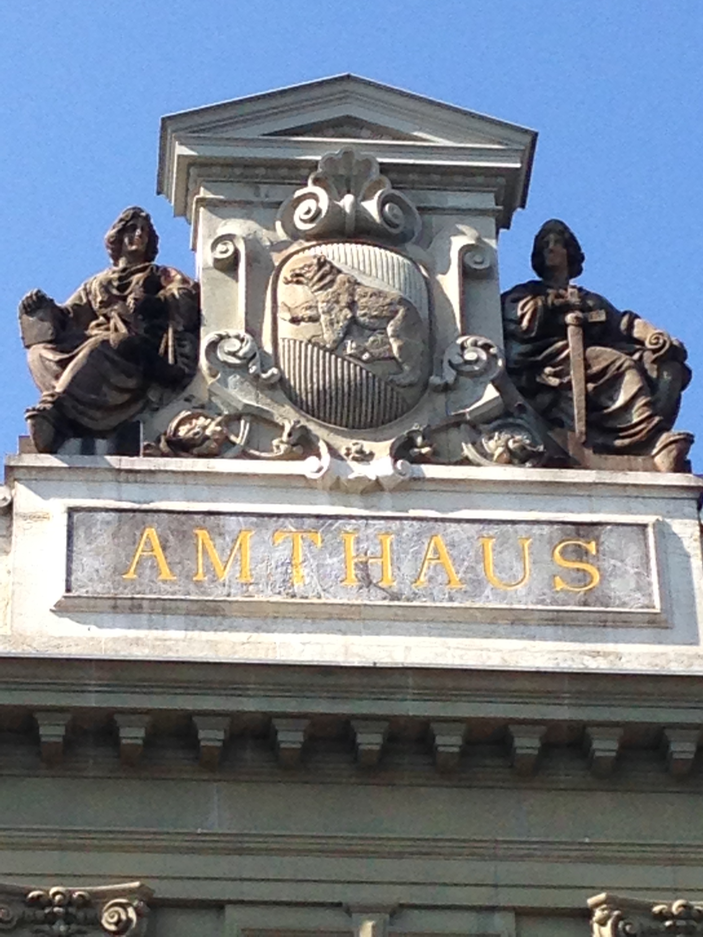 Lorsque j’y ai séjourné, je suis allée, comme tous les touristes, visiter le Bärenpark — dont on voit un des pensionnaires en couverture de cet article. Mais j’ai vu aussi des armoiries et emblèmes divers portant l’image d’un ours.