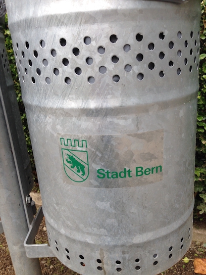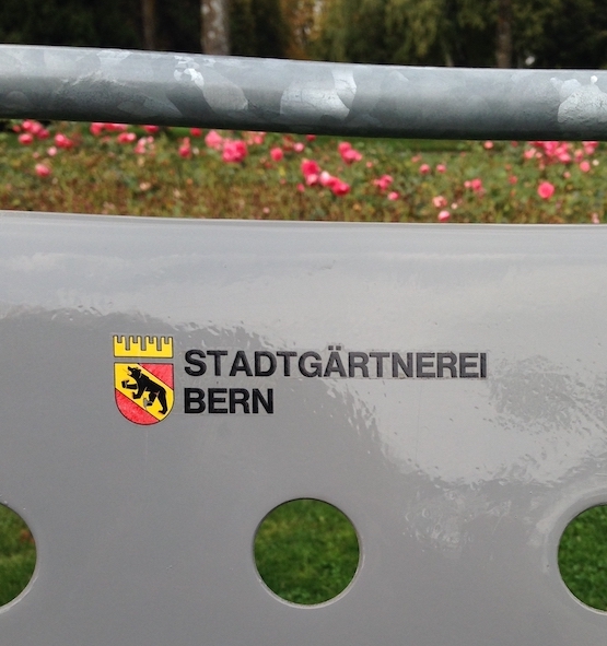 ou logo sur les poubelles et chaises du Jardin des roses (Rosengarten) :