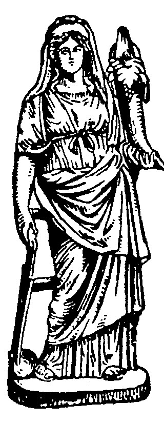 Dans sa main gauche, elle porte la Corne d’abondance, et, dans la droite, elle tenait probablement le gouvernail d’un bateau.