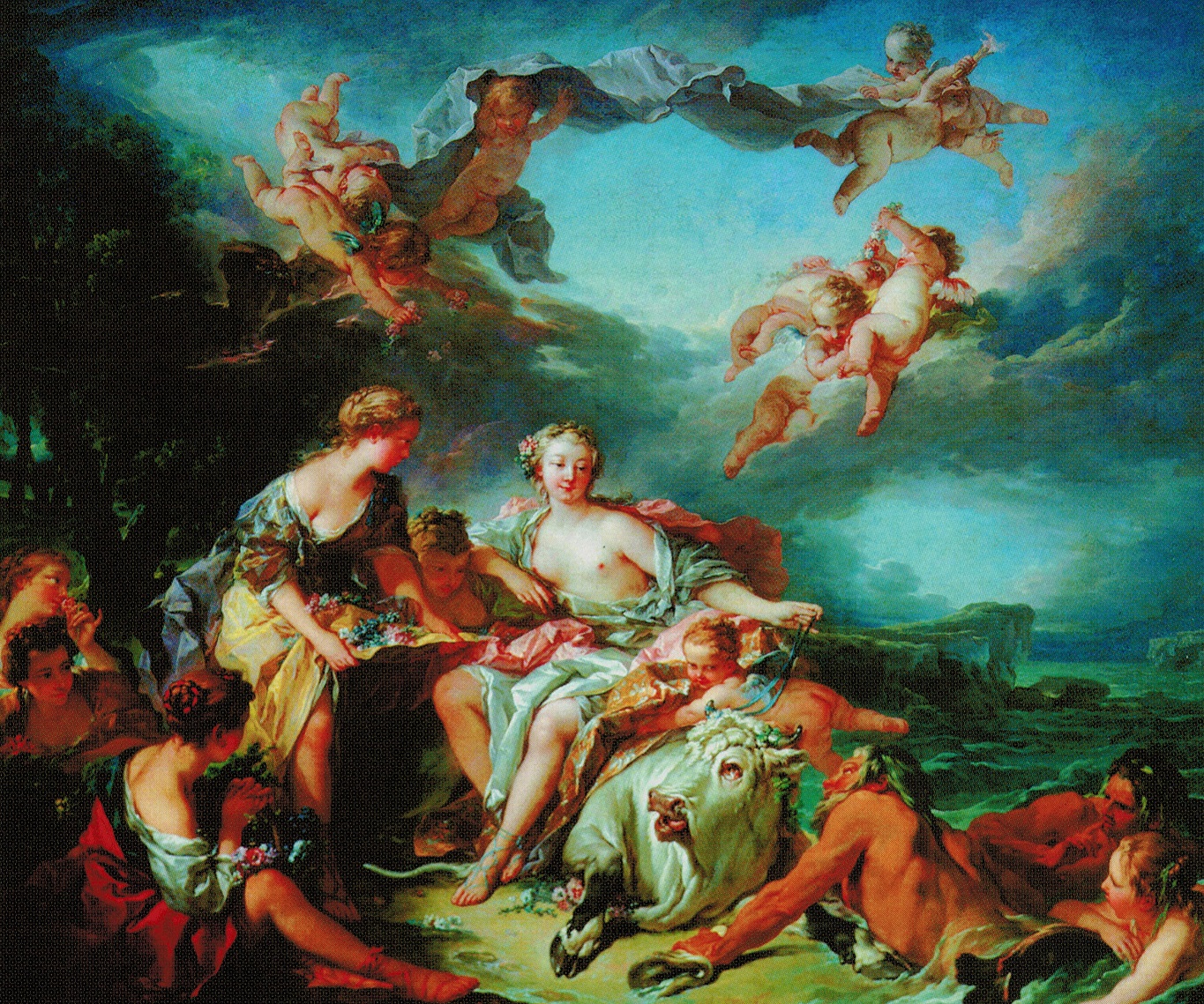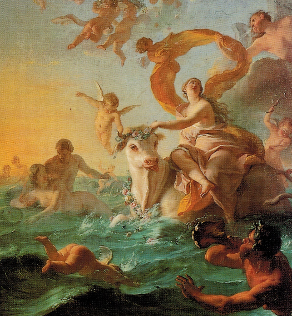 Par cette description finale — qui serait celle d’une peinture vue par Ovide — le poète latin fournit lui-même un thème pictural. En effet, “L’enlèvement d’Europe” fut un sujet de concours dans de nombreuses académies européennes des beaux-arts, du XVIIè siècle au XXè.
