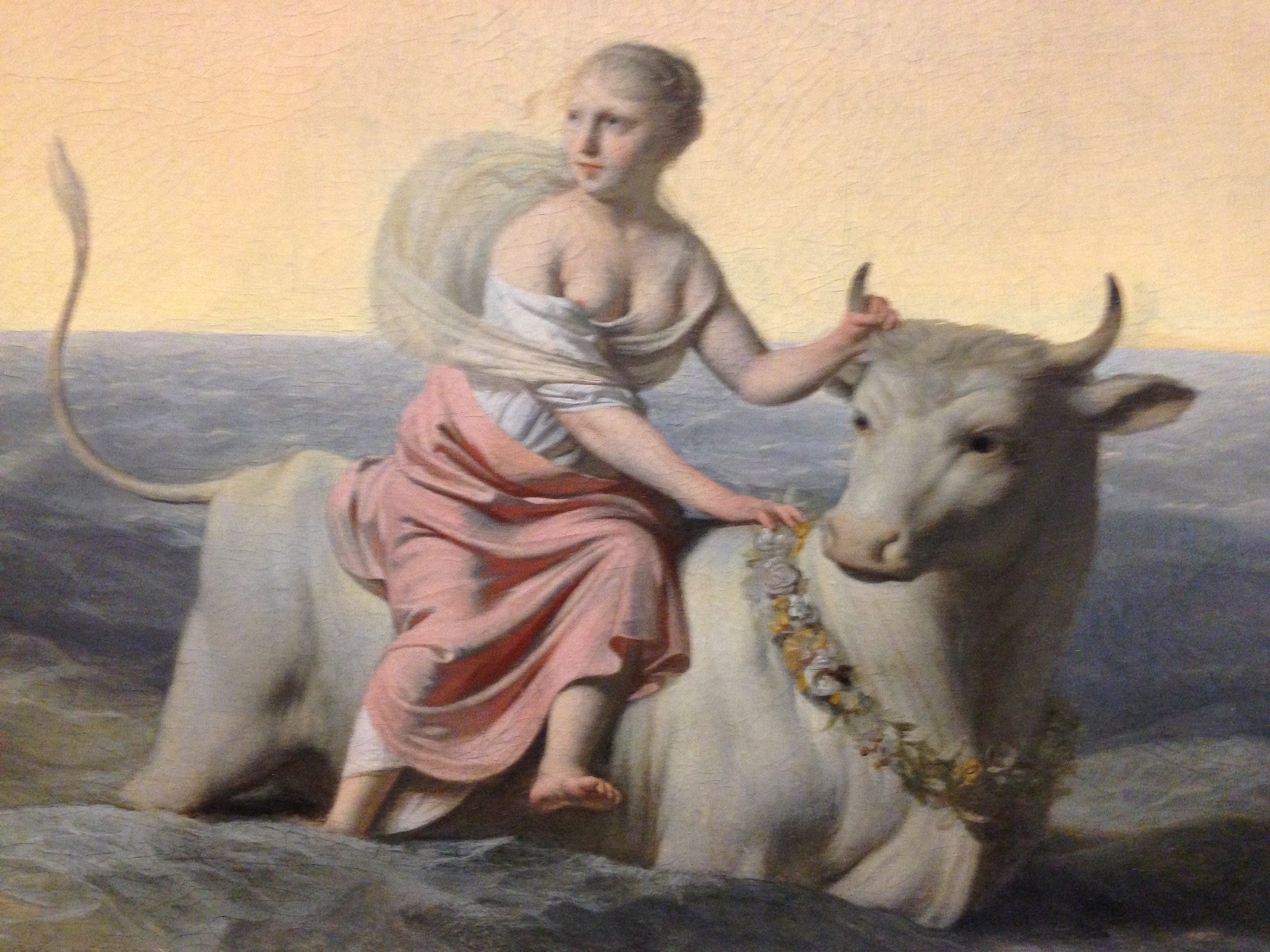 Le dieu Zeus/Jupiter tomba amoureux d’Europe, et, pour la conquérir, à l’insu de sa femme légitime (Héra/Junon), il prit l’apparence d’un taureau blanc.