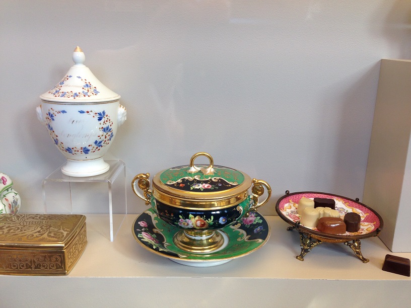 Mais si le café se démocratise assez rapidement (avec la naissance des “cafés”, lieux de consommation et de discussions), le chocolat, lui, est encore un produit de luxe et de raffinement au XVIIIè siècle, comme en témoignent les services de porcelaine faits pour en contenir :