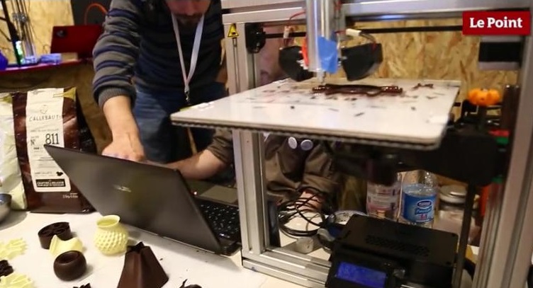 Une confiserie de Bruges affiche son nom en japonais, pour ses amateurs asiatiques (photo de couverture), tandis qu’à l’événement parisien intitulé Futurapolis, un laboratoire faisait récemment (30 novembre 2015) la démonstration d’une “imprimante 3D à chocolat” (Source : lepoint.fr) :