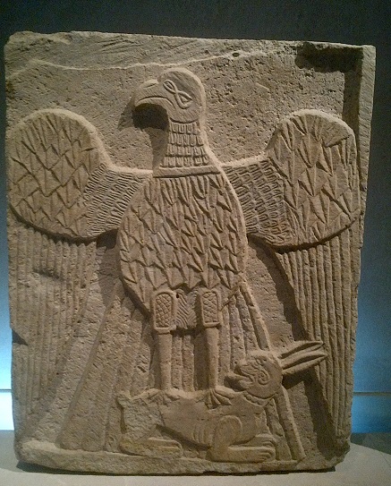 À droite, une sculpture grecque tardive (époque byzantine) montrant un aigle qui s’empare d’un lièvre.