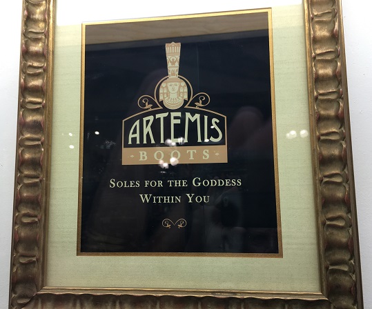 La déesse Artémis/Diane, chasseresse aux pieds rapides et légers, est devenue un argument publicitaire que j’interprète ainsi : trouver chaussure (made in California) à son pied est divin ! À moins que la référence à cette déesse ne permette de courir plus vite !