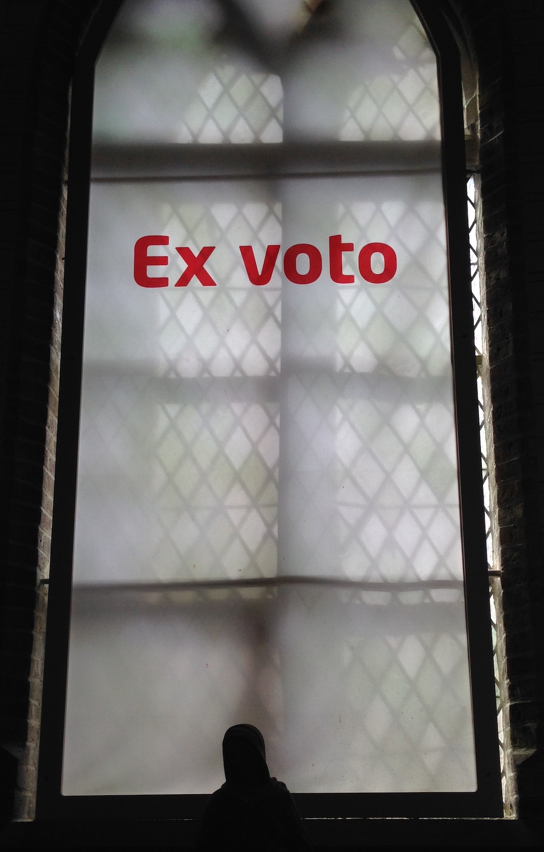 La connotation religieuse est manifeste en latin — comme elle se trouve encore dans le mot ex-voto, objet symbolique placé dans une église, en reconnaissance d’une faveur obtenue.