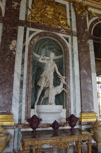 Censée avoir inventé, avec son frère Apollon, l’art de la chasse, Diane était une sorte de Grand Veneur des dieux. C’est pourquoi elle est représentée avec son arc, son carquois, ses flèches et une biche.