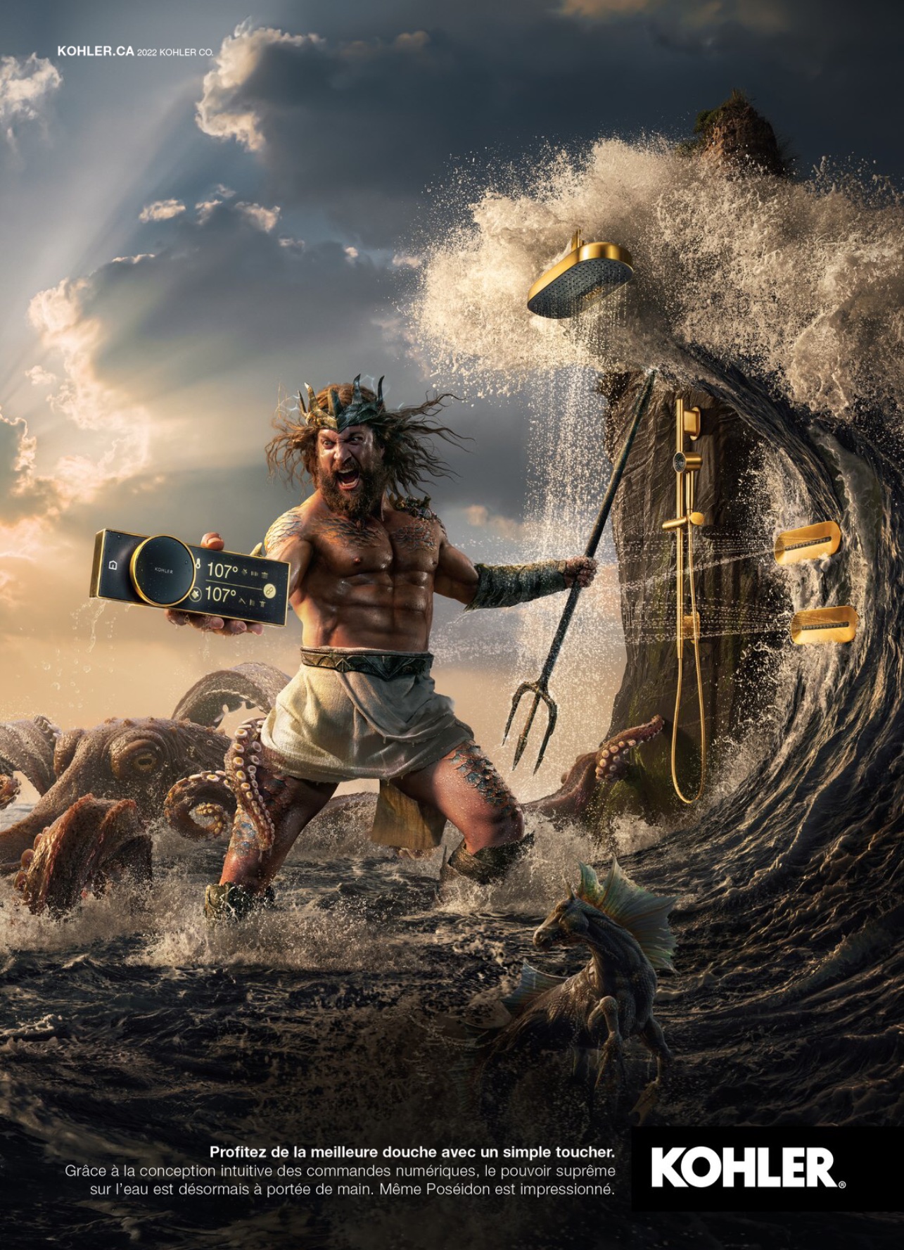 De nos jours, Neptune/Poséidon n’est plus officiellement invoqué par les navigateurs, mais, plus modestement, par les amateurs de douches — si l’on se fie à cette publicité canadienne — ou bien les joueurs d’échecs en Ouzbékistan !