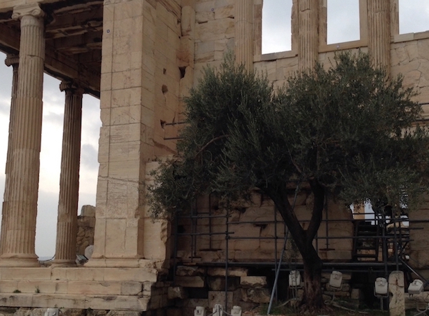 Dans les temps immémoriaux de la Grèce, Poséidon se mesura à sa nièce, la déesse Athéna, pour la possession de l’Attique et de sa ville principale, Athènes — dont le nom rappelle qui emporta finalement la joute : Athéna. Et pourtant, selon le Dictionnaire de l’Antiquité (coll. Bouquins, éd. Robert Laffont, p. 805), devant les habitants réunis, il fit surgir une source d’eau salée en frappant le sol de l’Acropole ; mais Athéna, qui avait fait le don de l’olivier, se vit attribuer la victoire par les Athéniens.