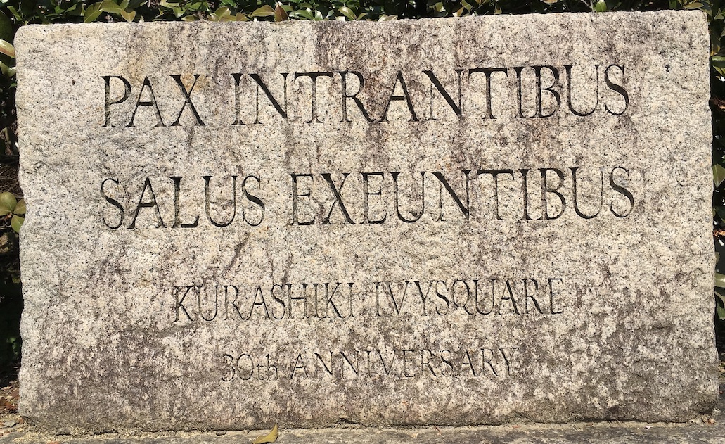 To finish with this small sample of Ancient cultures as seen in a short time spent in Japan, here is (below) a stone laid near the Kurashiki Hotel Ivy Square, where I stayed: