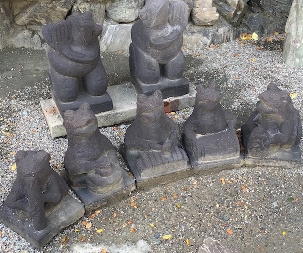 Chat, blaireau, grenouille, renard, lapin etc. — au Japon, un véritable bestiaire accompagne la vie quotidienne. Chaque animal a une valeur symbolique : le chat pour les commerçants, le blaireau devant les bistrots, le lapin, le renard et la grenouille dans les sanctuaires.