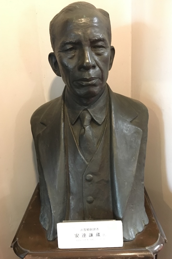 À l’origine, le “temple” de Yokohama était la villa de Kenzō Adachi (1864-1948), homme politique d’importance. Il la fit construire en 1933, au Cap Honmoku, un promontoire situé juste au bord de la mer, à l’époque. Depuis lors, la ville portuaire immense a empiété sur l’océan. Mais un grand parc protège encore le calme de la villa.