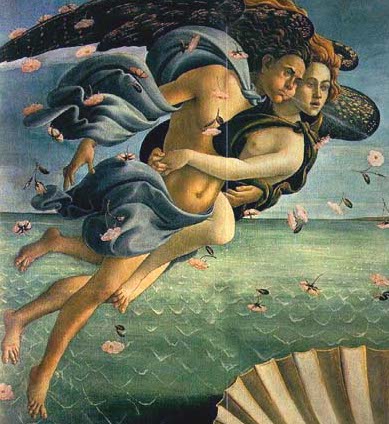 Dans La Naissance de Vénus (c. 1499), il est à gauche, enlacé par une jeune créature féminine qui répand des fleurs (Flore ?). Divinité masculine, il est uni à une divinité féminine pour signifier que le souffle vivifiant unit l’Amour à la Beauté (principes incarnés dans Vénus), selon la philosophie néo-platonicienne.