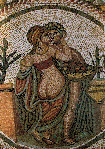 On le voit très bien sur cette mosaïque sicilienne antique (de Piazza Armerina), reprise sur l’étiquette d’un vin sicilien moderne !