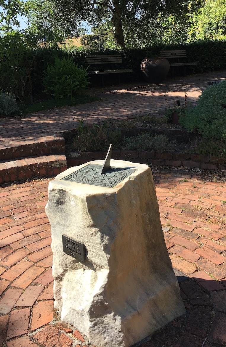 À l’opposé du monde infernal souterrain, dans le Jardin Botanique de Wellington, un cadran solaire fait l’éloge du soleil.