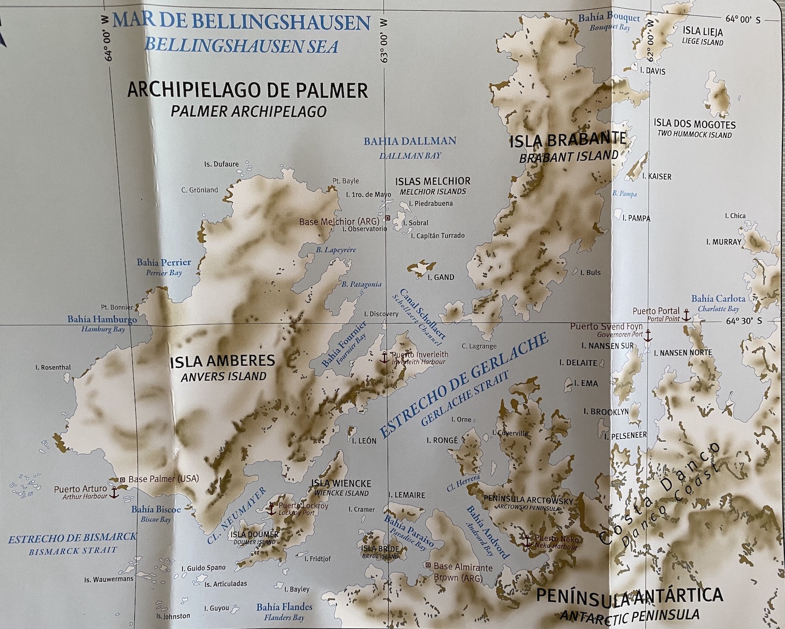 Parti d’Ushaïa, le bateau a franchi le Cap Horn, puis le Passage (houleux !) de Drake, pour arriver aux abords de la Péninsule antarctique, au Nord (et Nord-Ouest) du “sixième continent” — reconnu comme tel en 1840, après avoir été “conquis” il y aura deux cents ans cette année.