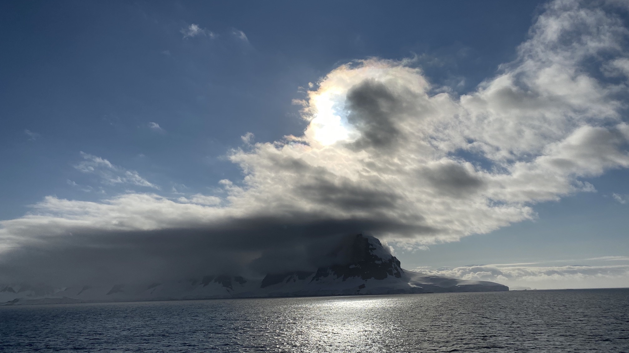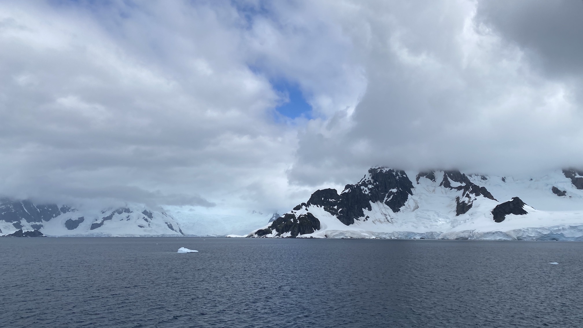 Mais, chaque jour, nous avons pu admirer un paysage spectaculaire et inoubliable, toujours pareil et pourtant toujours changeant : la mer, les rochers de granite, les icebergs, le ciel et les nuages. J’ai particulièrement aimé les métamorphoses du ciel, lumineux plus de vingt heures sur vingt quatre pendant l’été austral.