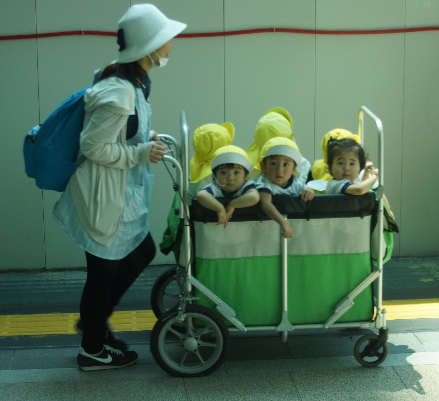Ainsi voit-on “masqués” baby sitters, chauffeurs de bus, écolières, badauds dans un parc, qui protègent les autres en se protégeant eux-mêmes. Ce qui est la situation actuelle dans de nombreux pays, autres que le Japon.