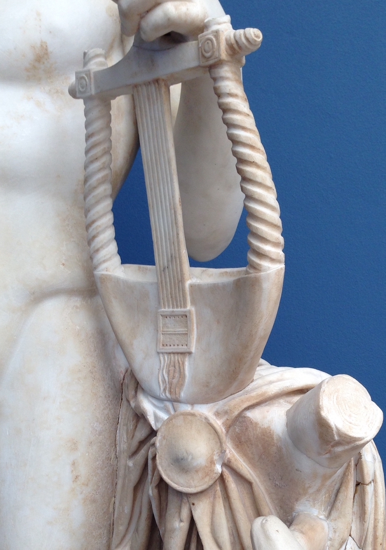 Apollon avait ses bœufs qu’Hermès lui déroba ; celui-ci ne put se faire pardonner son larcin, ce sacrilège, qu’en donnant à Apollon la lyre qu’il avait inventée, faite d’une peau et de nerfs de bœuf, tendus sur une carapace de tortue (Symboles, p. 133).
