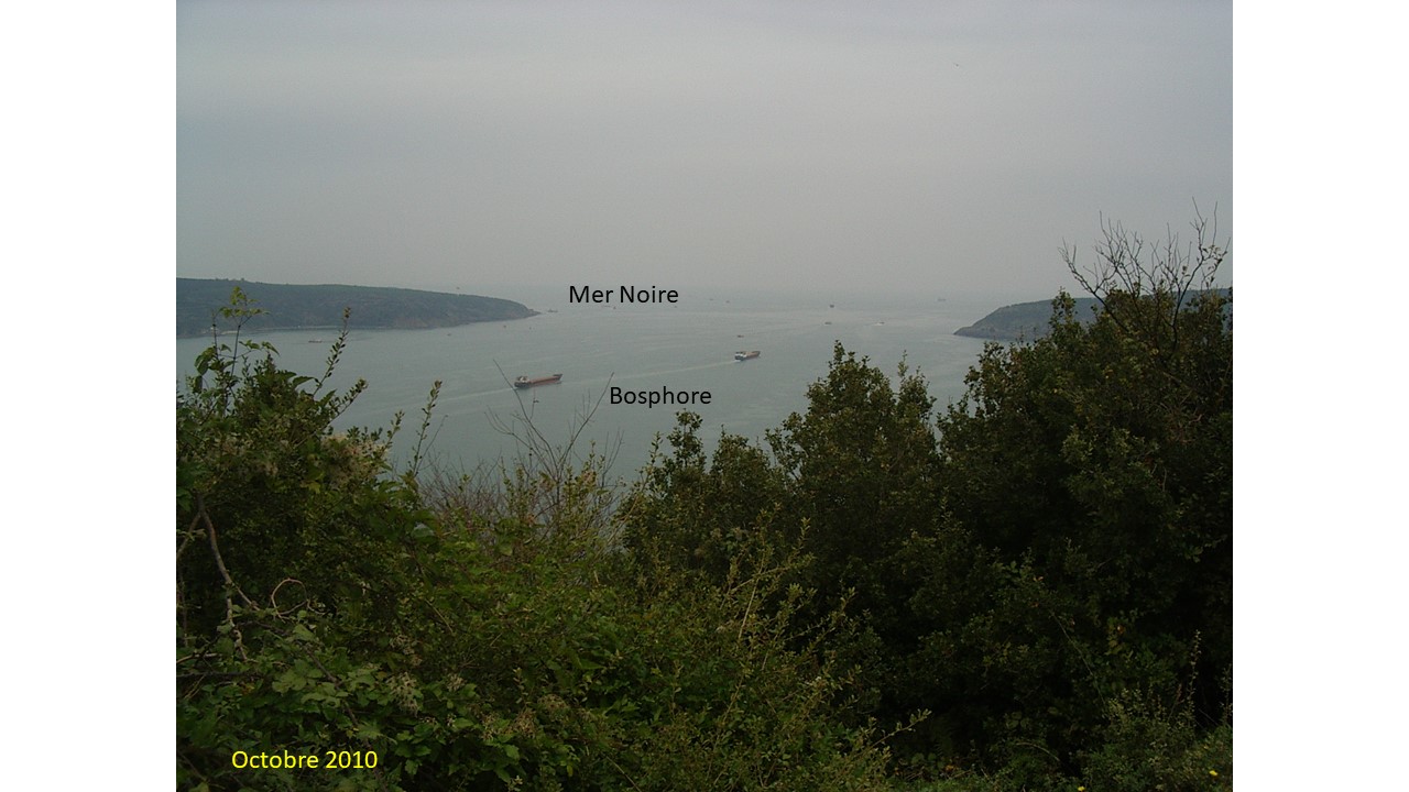 Le Bosphore, littéralement “le gué des bœufs” (qui a exactement le même sens que le nom de la ville anglaise d’Oxford !), désigne deux lieux différents : le Bosphore thrace, détroit qui relie la Mer de Marmara (Propontide) à la Mer Noire et sépare l’Europe de l’Asie. D’après la mythologie grecque, c’est là que la génisse Io passa d’un continent à l’autre (peut-être d’Asie en Europe) ; le Bosphore cimmérien, détroit reliant la Mer Noire à la Mer d’Azov. On dit également de lui qu’il tire son nom d’une traversée faite par Io (Dictionnaire de l’Antiquité, coll. Bouquins, éd. Robert Laffont, p. 154).