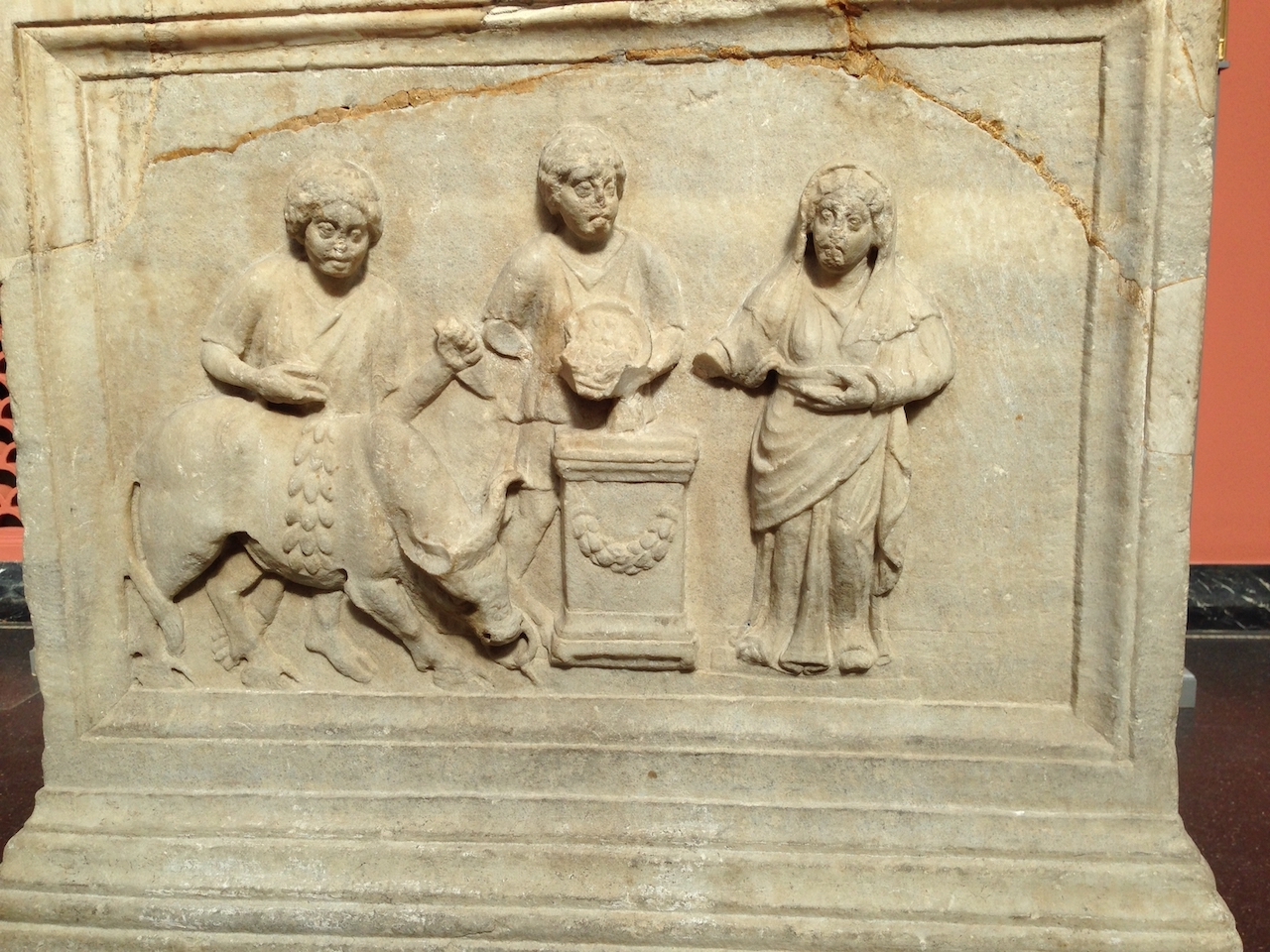 Signifiant littéralement “crâne de bœuf”, le bucrane (bucranium) est un motif ornemental constitué d’une tête de bœuf sculptée et fréquemment employé dans l’architecture romaine.