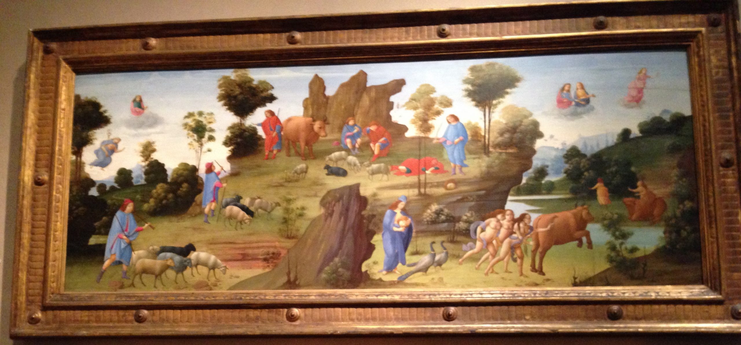 Dans l’Odyssée (chant XII), Ulysse et ses compagnons arrivent dans l’île de Trinacia (la Sicile) où Hélios, le dieu Soleil, faisait paître ses bœufs, d’une blancheur immaculée et aux cornes dorées. Le devin Tirésias avait prévenu Ulysse de ne pas porter atteinte à ce troupeau. Malheureusement, ses compagnons affamés tuèrent les bêtes pour les manger. À cause de ce sacrilège, Zeus/Jupiter frappa de la foudre le bateau et son équipage. Seul Ulysse, qui n’avait rien fait de mal, survécut au naufrage et, accroché à une épave, finit par s’échouer sur l’île de la nymphe Calypso. La suite est une autre histoire …