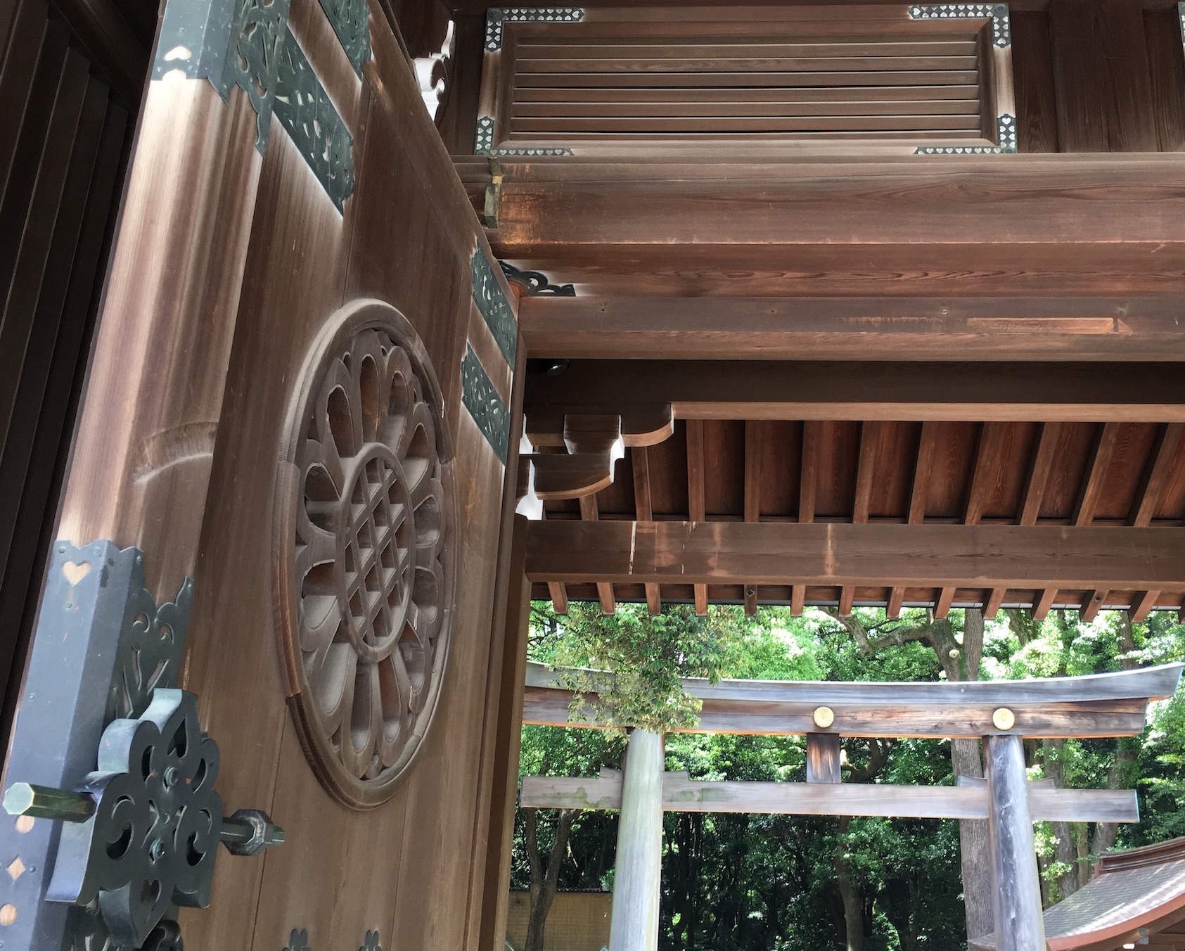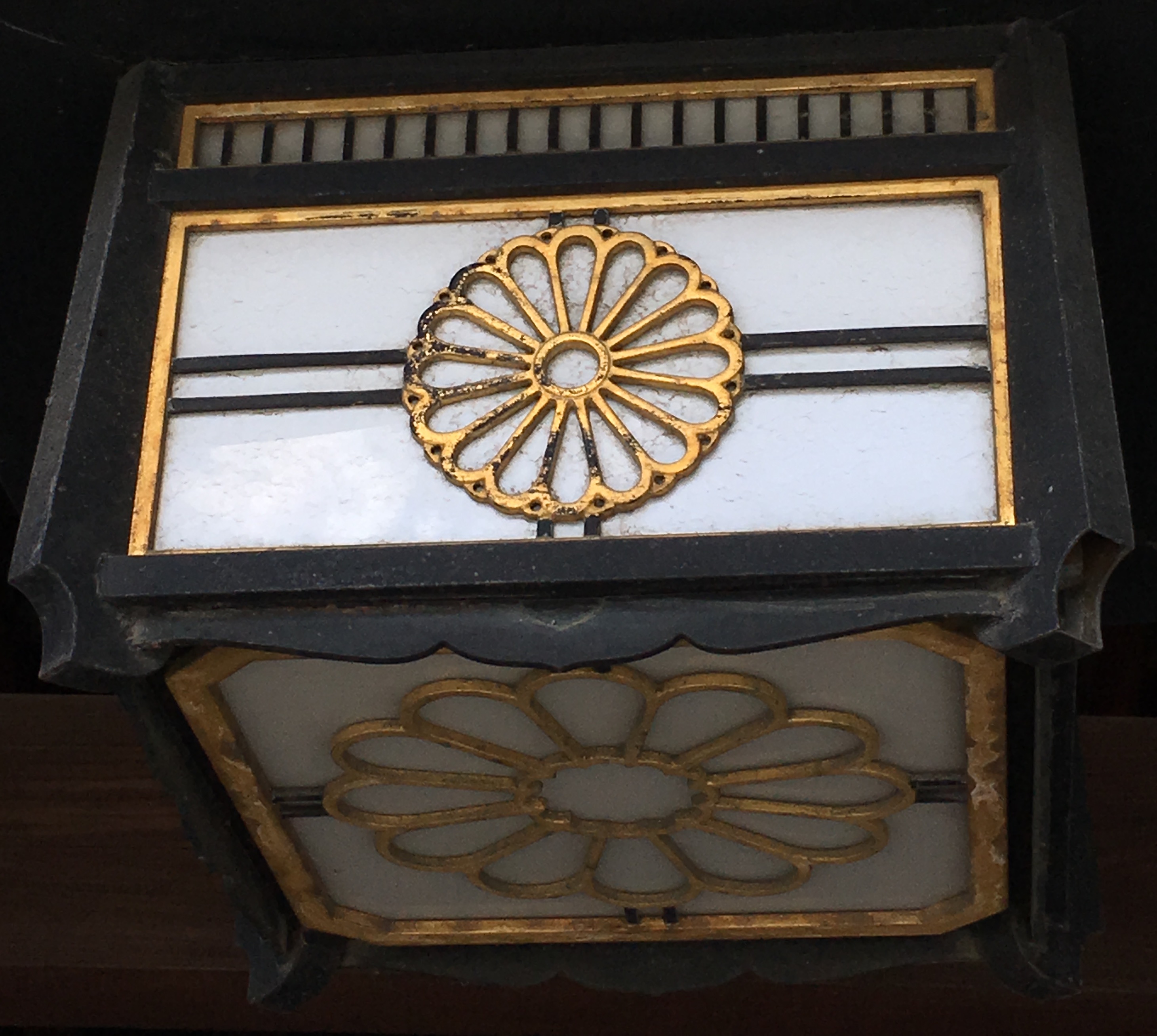 Le chrysanthème est l’emblème de l’Empereur Meiji, nom posthume (ji signifiant “gouvernement” et mei “lumière” ; “éclairé”) de Mutsuhito, dont le long règne marqua l’entrée du Japon dans la Modernité. L’ère Meiji (Meiji jidai) — période qui s’étend du 8 septembre 1868 au 30 juillet 1912 — est encore pour les Japonais actuels synonyme d’ouverture au reste du monde. L’Empereur fut déifié après sa mort, et un sanctuaire au milieu d’un grand parc boisé et d’un jardin d’iris fut construit à Tokyo pour le révérer. Ouvert en 1926, détruit par les bombardements de la Seconde Guerre Mondiale, ce sanctuaire fut reconstruit en 1958. Il s’y tient de nombreux festivals, dont celui des iris au printemps et celui des chrysanthèmes du 31 octobre au 3 novembre.