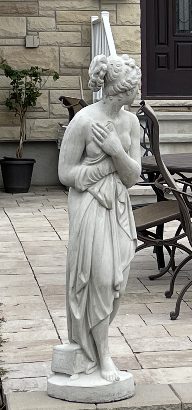 Récemment, en me promenant dans mon quartier, la neige ayant fondu j’ai remarqué quelques maisons ornées de statues. Non pas des “nains de jardin”, mais des “vénus”, populaires dans beaucoup d’endroits du monde !