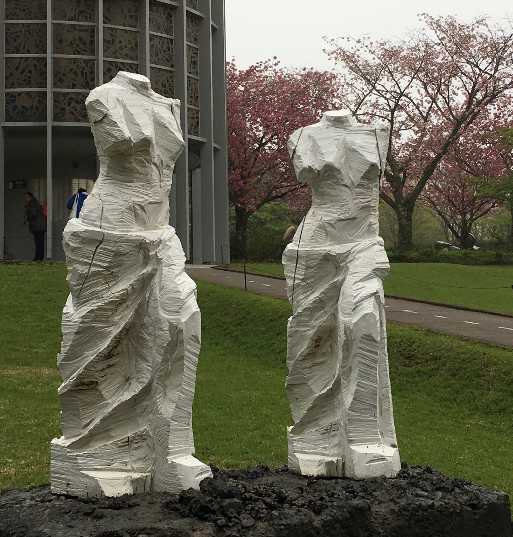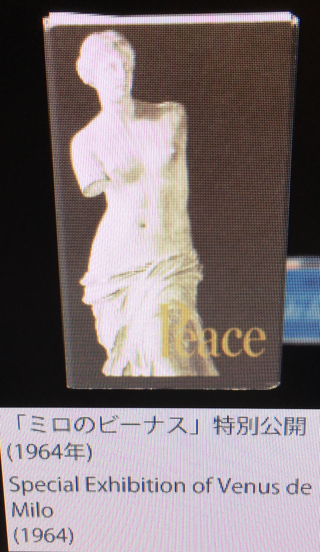 Au Japon, l’Open Air Museum à Hakone est, comme son nom l’indique, un immense musée en plein air où sont disposées çà et là toutes sortes de statues de grande taille. J’y ai vu un duo inspiré de la Vénus de Milo. Et, à Tokyo, le Musée du Tabac et du Sel expose des artefacts divers, comme cette boîte d’allumettes à l’effigie de la Vénus de Milo, porteuse d’un message de paix.