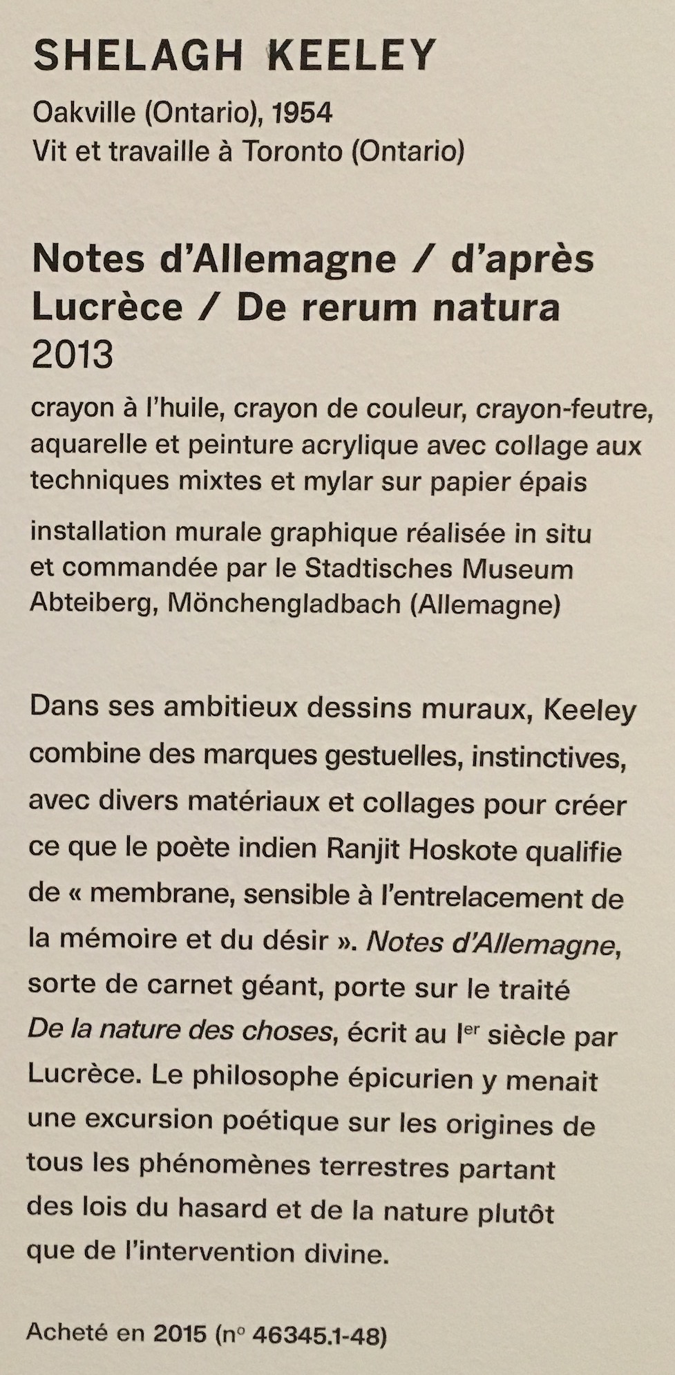 En 2017, le Musée des Beaux-Arts d’Ottawa présenta une exposition mettant en scène des peintres canadiens. Une immense murale était dédiée au De natura rerum de Lucrèce :
