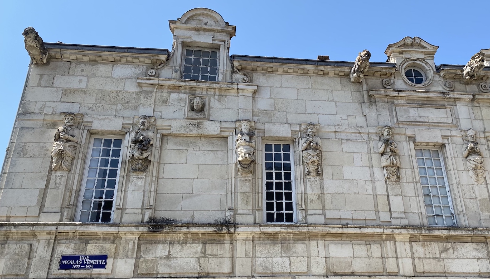 Autre personnalité rochelaise, le médecin Nicolas Venette (1633-1698) publia de nombreux ouvrages médicaux et de sciences naturelles. La maison qui porte son nom, construite au début du XVIIè siècle pour l’Espagnol Martin Bartox, devenu “médecin ordinaire de la cité”, est ornée de gargouilles et de bustes de médecins célèbres de l’Antiquité (plaque explicative).
