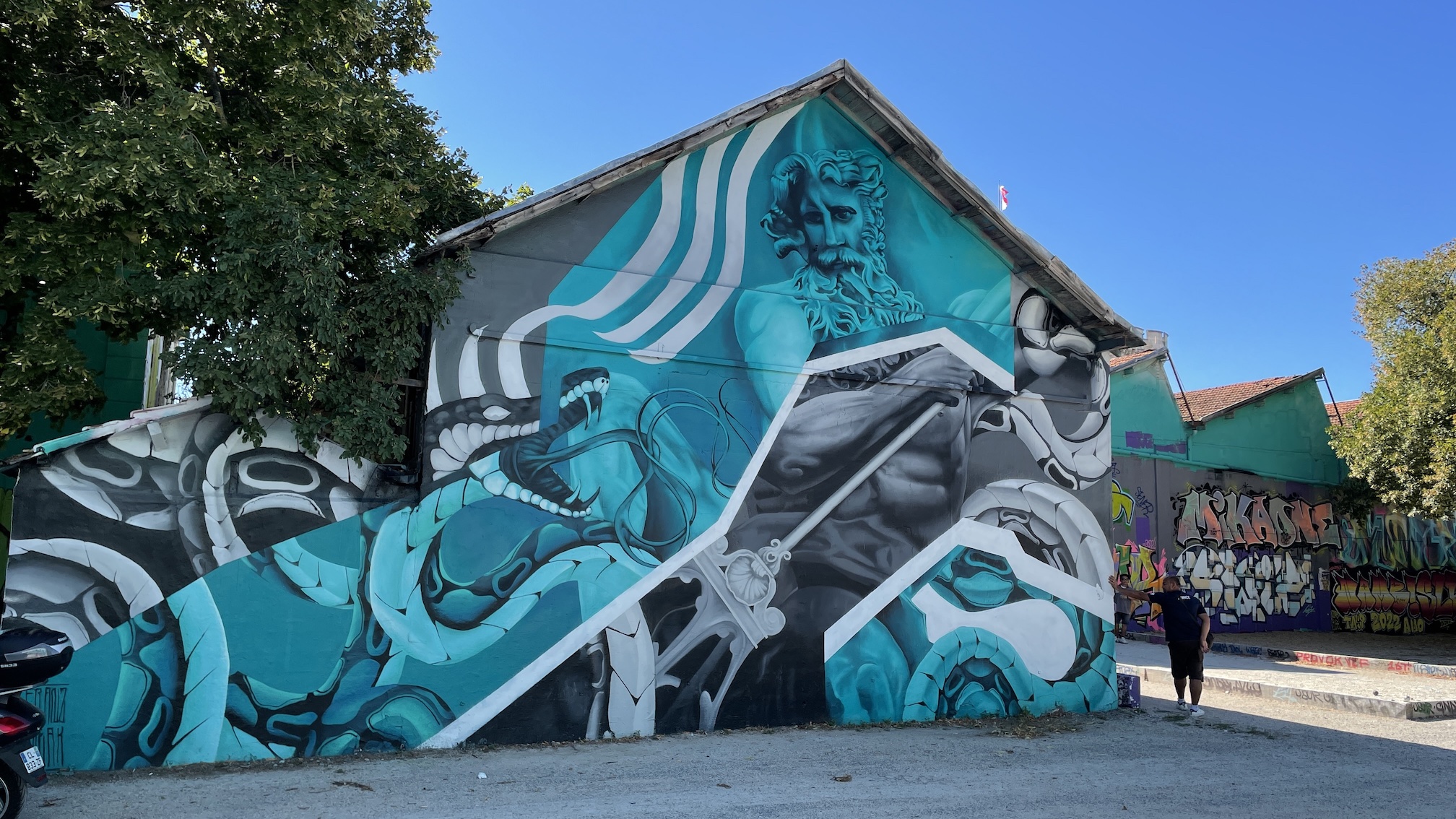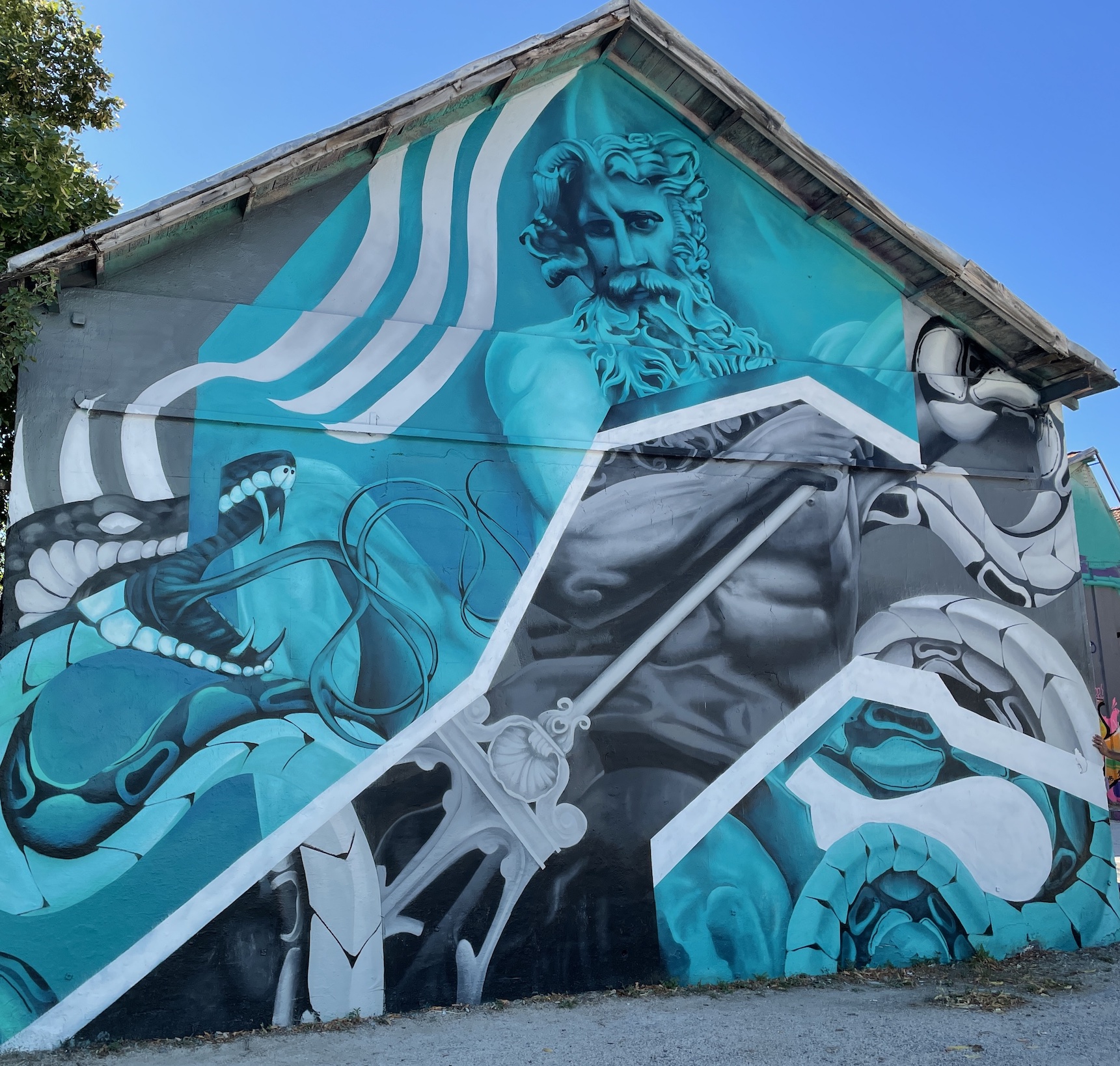 Toujours dans les environs du port, dans le quartier du Gabut on peut admirer d’immenses murales, récemment exécutées et très colorées. L’une de ces peintures, jouxtant le bassin des yachts, évoque la Mer de façon allégorique. Une spectaculaire représentation du dieu gréco-romain Poséidon-Neptune y figure avec majesté.