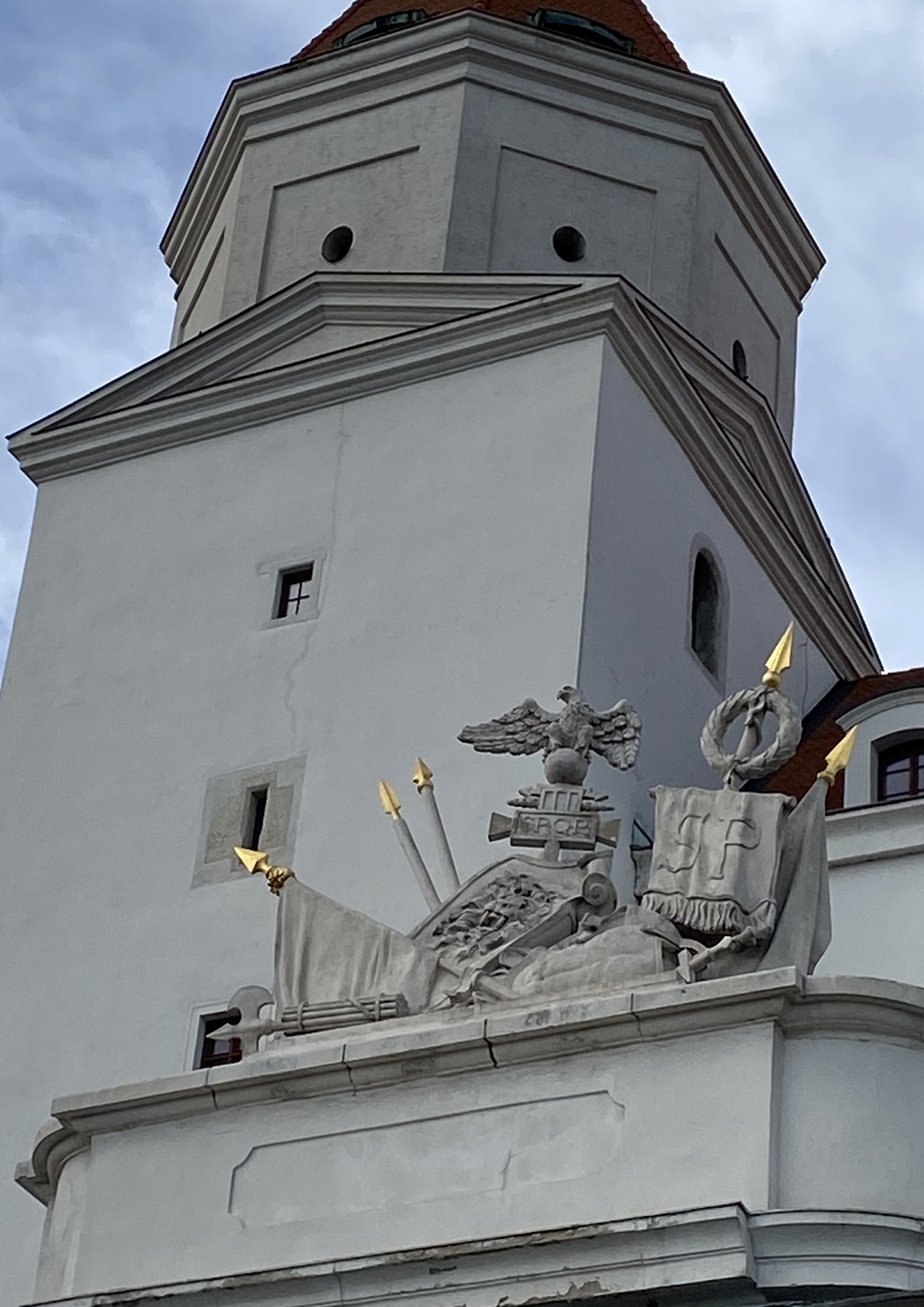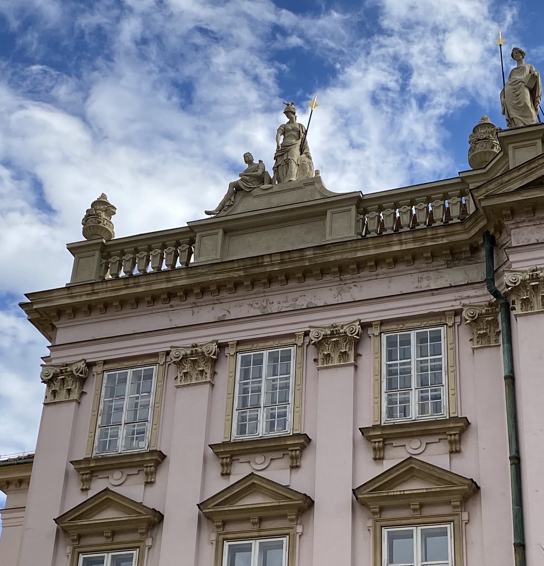 Après Prague, je suis allée à Bratislava, charmante capitale de la Slovaquie. N’y étant restée qu’une journée, j’ai notamment parcouru à pied le centre-ville historique et suis montée au château — ce qui m’a permis de glaner, comme à Prague, quelques détails architecturaux rappelant l’Antiquité gréco-romaine.