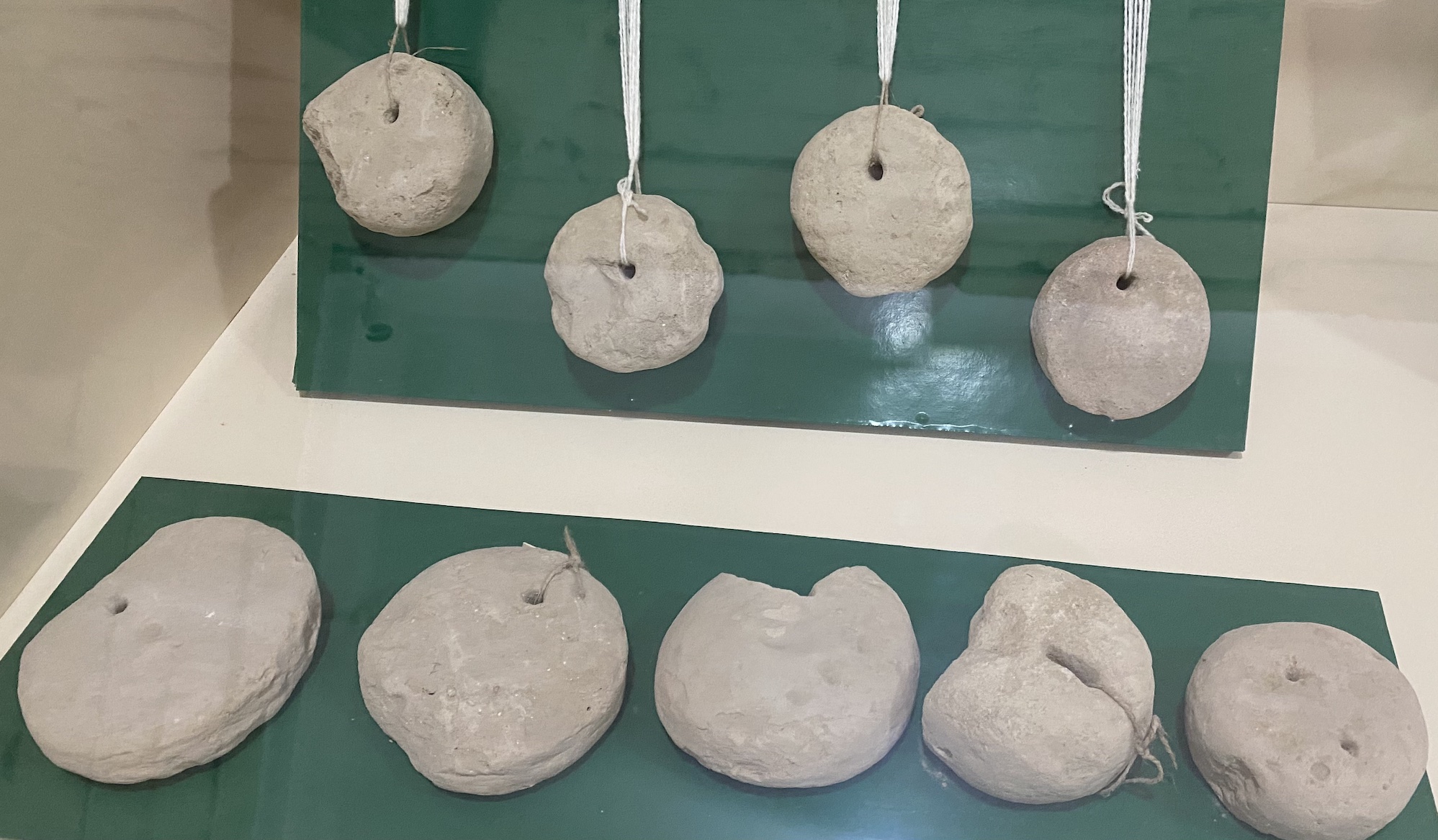 Dans le musée, les artefacts exposés près des gravures sont postérieurs au passage d’Alexandre. On voit principalement des instruments de cuisine et des accessoires de construction, en particulier des poids permettant aux bâtisseurs d’avoir des fils à plomb.