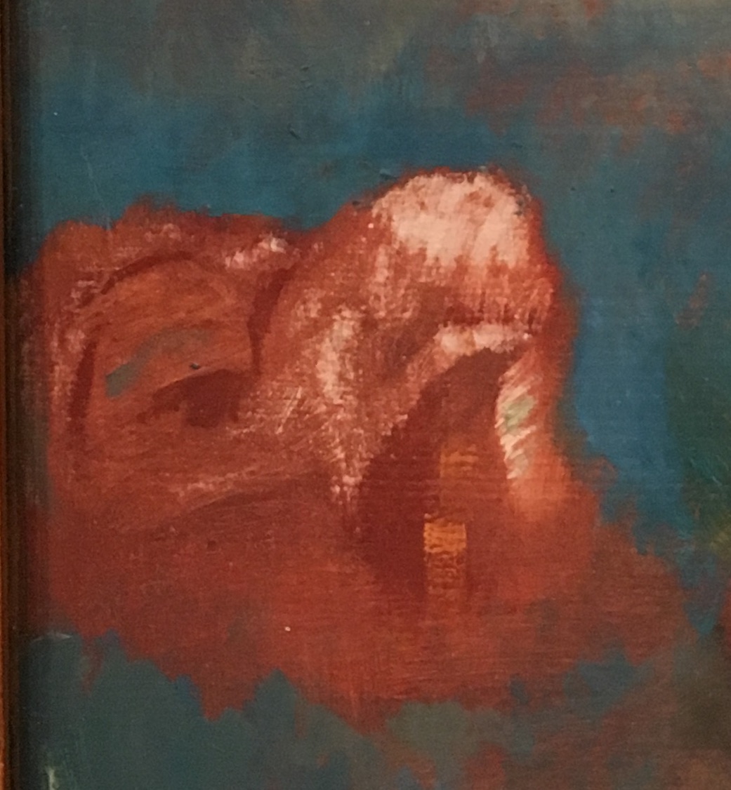Sur le tableau du peintre symboliste qu’est Odilon Redon, on remarque le contraste entre la silhouette blanche et frêle de la femme et la tête démesurément grosse, rouge et presque floue de la bête — façon picturale de souligner l’effroi que peut inspirer ce personnage monstrueux.