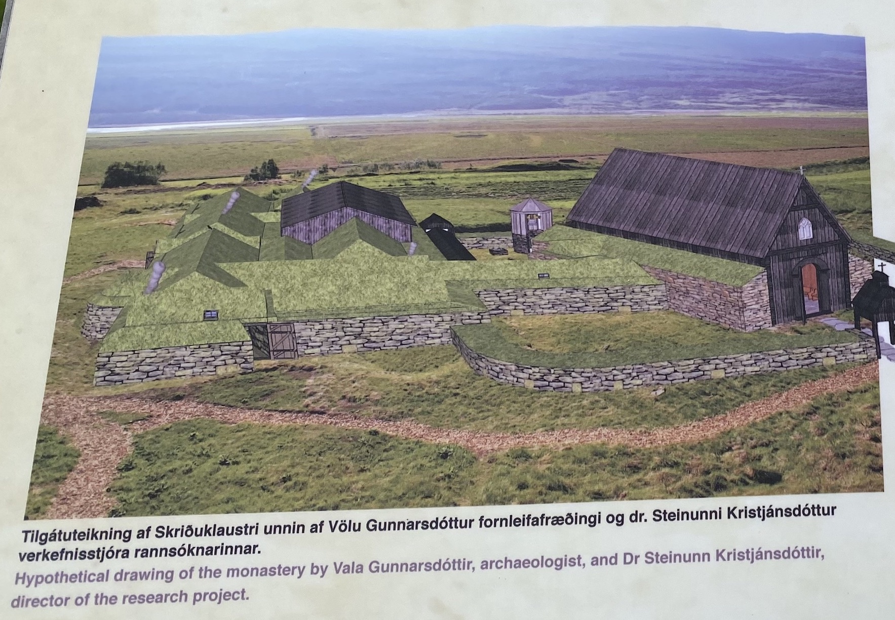 À l’Est de l’Islande, la deuxième escale était Seydisfjördur, mais nous avons quitté le port pour nous rendre en car dans l’intérieur des terres. Au Moyen-Âge, comme beaucoup de pays européens, l’Islande s’est dotée de nombreux monastères, couvents et cloîtres — et nous sommes allés voir l’emplacement et les ruines d’un cloître nommé Skriduklaustur.