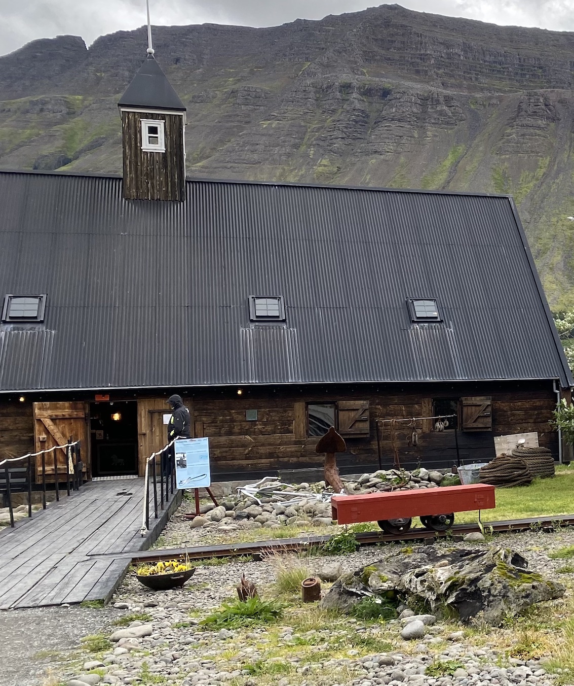 Au Nord-Ouest de l’Islande, la première escale était Isafjördur — une petite ville que nous avons parcourue à pied, alors que tout était fermé car c’était un jour férié ! Mais un des rares édifices accessibles à la visite était le musée. Ce musée expose des artefacts témoignant des activités des habitants autrefois : vieux matériel agricole, gréements de bateaux de pêche, maquettes, nourriture traditionnelle des marins etc.