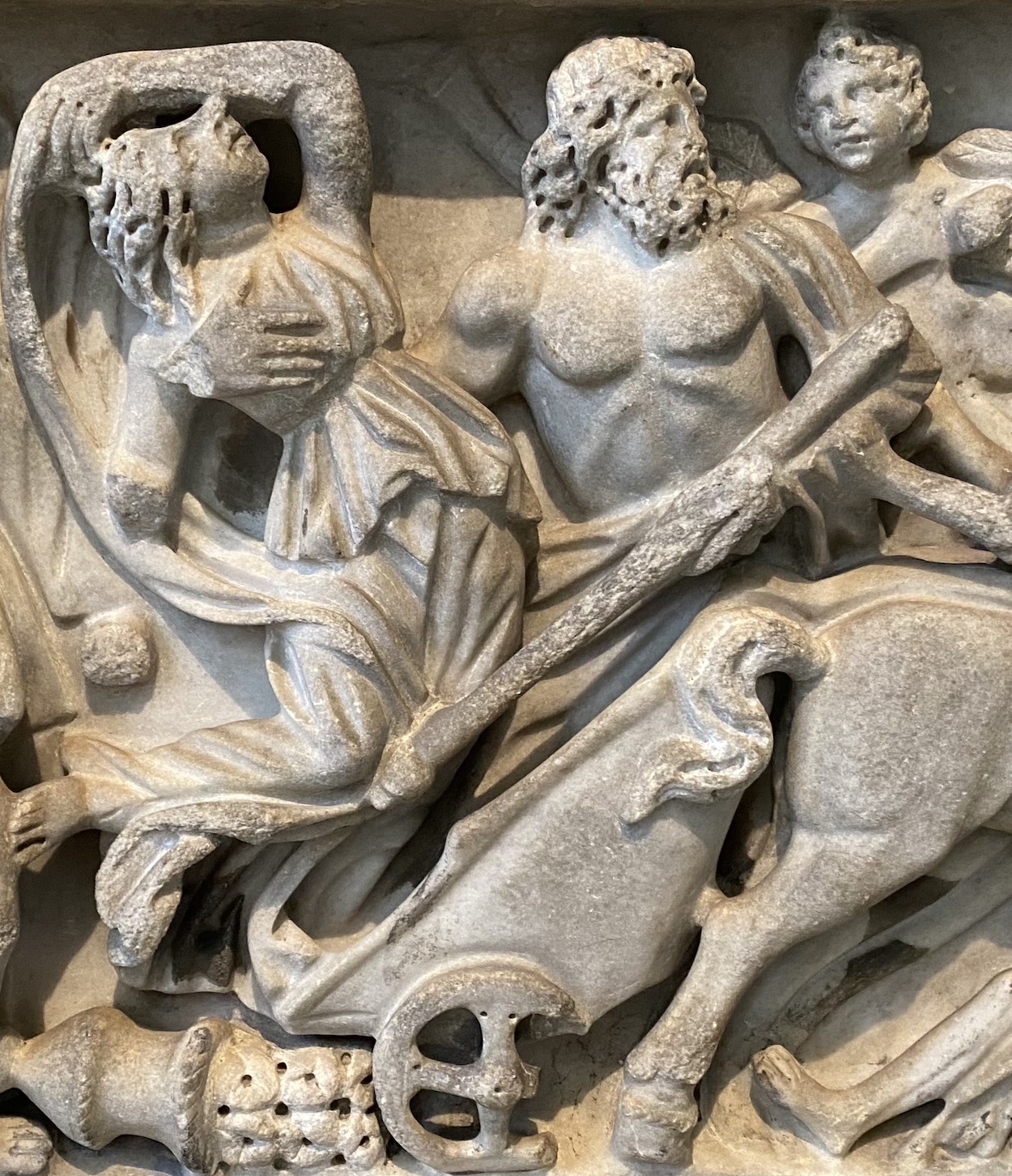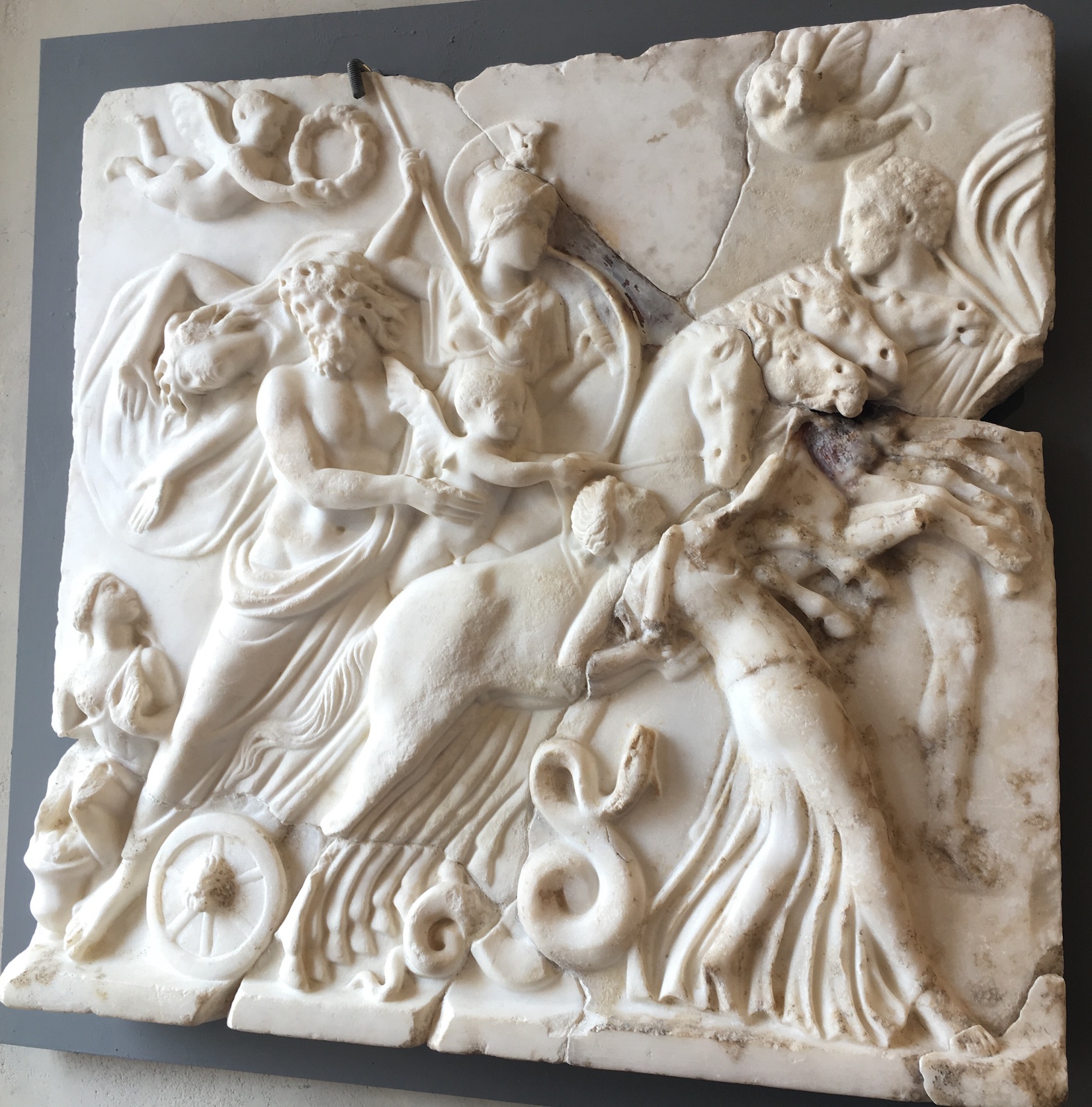 Un tableau de marbre blanc du début du IIe siècle de notre ère, exposé au Musée archéologique de Toulouse ainsi qu’un sarcophage romain en marbre du IIIè siècle exposé au Musée Walters de Baltimore représentent cet enlèvement de façon spectaculaire.